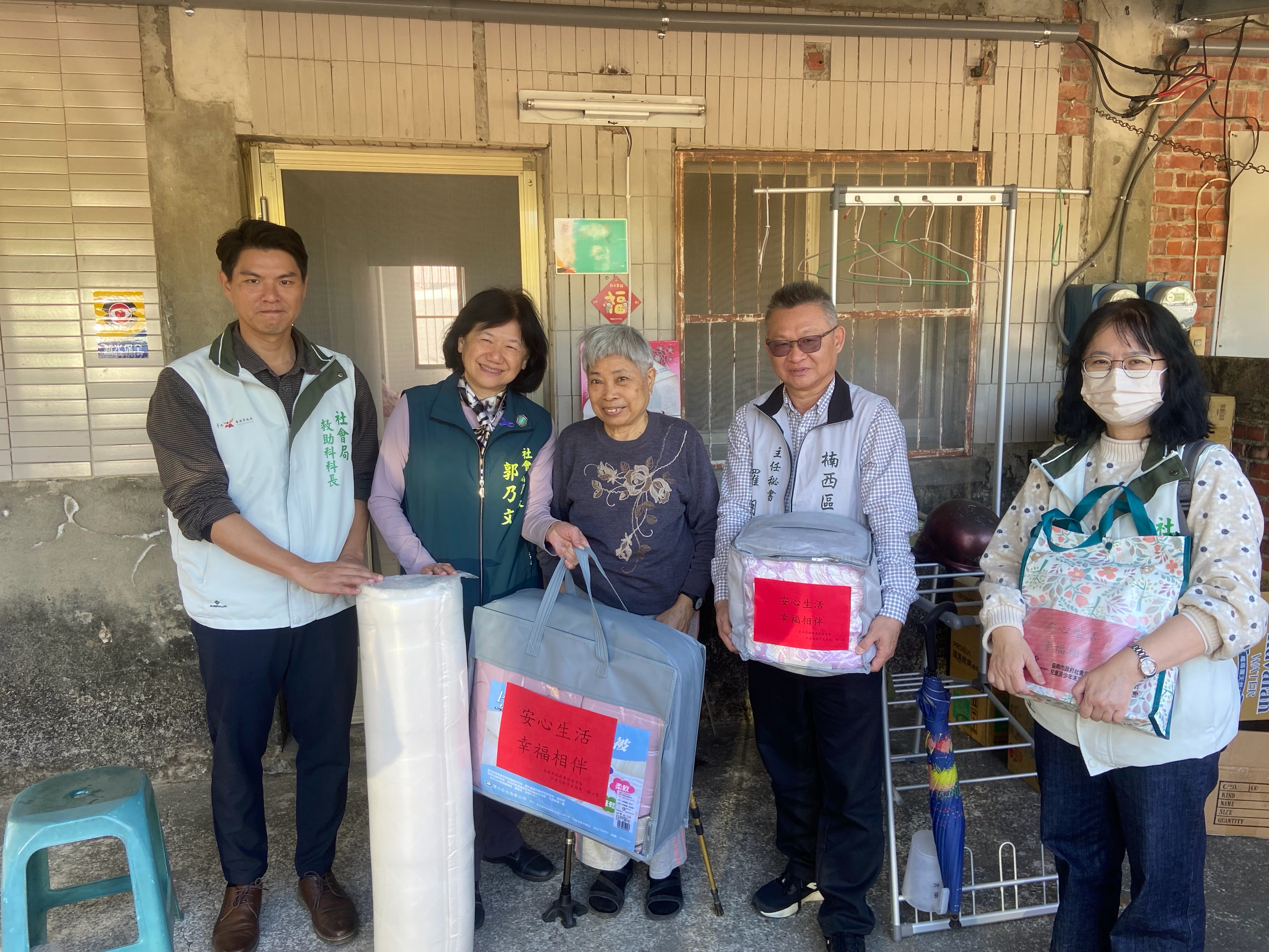 在本次慰訪中,居住於南水分署宿舍的80歲蔡洪阿嬤,因脊髓手術後行動不便,社工人員長期關懷訪視,每次見面阿嬤總是面帶笑容、雙手合十表達感謝。近日社工得知阿嬤長期使用的床墊已出現變形,影響睡眠品質與身體舒適度,社會局郭乃文局長特別親自將新床墊與棉被送至住處關懷。阿嬤緊緊牽著郭局長的手,感性地表示:「感謝社會局一年來一直關心大家。」場面溫馨感人。